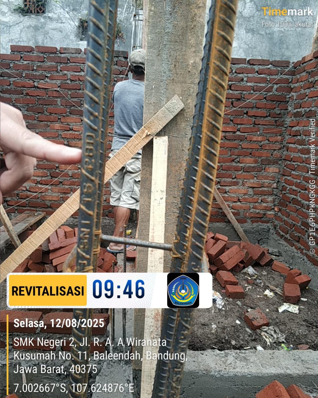 Kemudian yang kedua, pelaksanaan kerja selalu menerapkan K3 dengan menggunakan APD yang telah ditentukan, adapun momentum mungkin pada saat itu waktu istirahat bersamaan dengan kehadiran teman-teman dari media/masyakarat sebagai bagian dari kontrol sosial pelaksanaan program revitalisasi di SMKN 2 Baleendah.