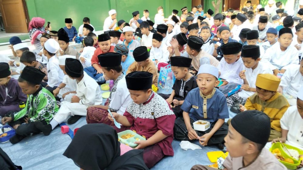 SOROT JABAR – Pada hari Selasa tanggal 22 Oktober 2024 yang bertepatan dengan Hari Santri Nasional, SDN 089 Babakan Ciparay menyemarakannya melalui kegiatan yang biasa dilakukan oleh para santri dan santriwati yaitu makan secara bersamaan, duduk beralaskan terpal, walau tidak menggunakan daun pisang sebagai alasnya namun tidak menghilangkan esensinya, yaitu duduk bersama saling berbagi satu sama lain sehingga tidak ada yang duduk termenung walaupun tidak membawa makanan.